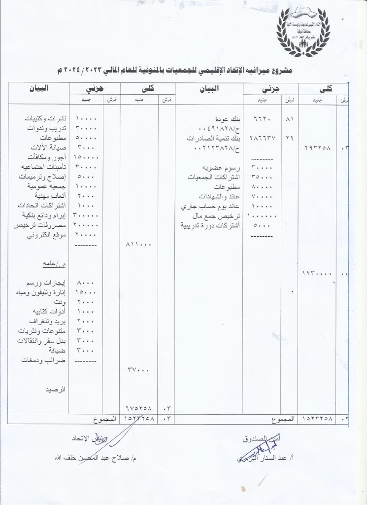 دعوة الجمعية العمومية العادية فى 2024/2/14 1,262 زيارة يتشرف مجلس إدارة الإتحاد بدعوة الجمعية العمومية للأتحاد للأنعقاد يوم الأربعاءالموافق 2024/2/14 بمقر جمعية الشبان المسلمين بشبين الكوم فى تمام العاشرة صباحا على النحو التالى : الإتحاد الإقليمي الشبان المنوفية دعوة الجمعية العمومية 2024-01-28 admin